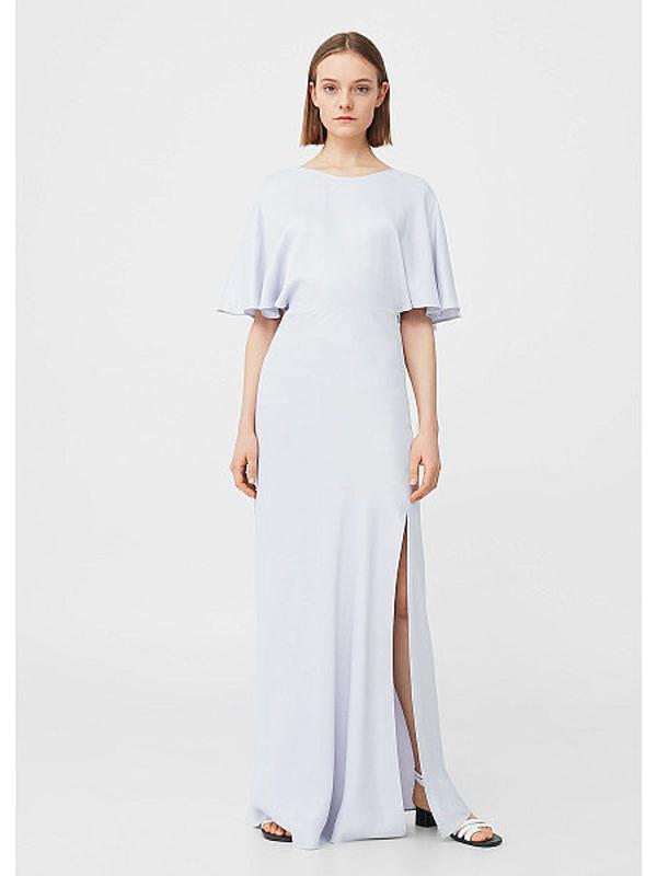 Платье в бельевом стиле длинны макси с открытой спиной и разрезом на ноге. Красивого серебристо-голубого цвета. Подойдет на размер с/м.