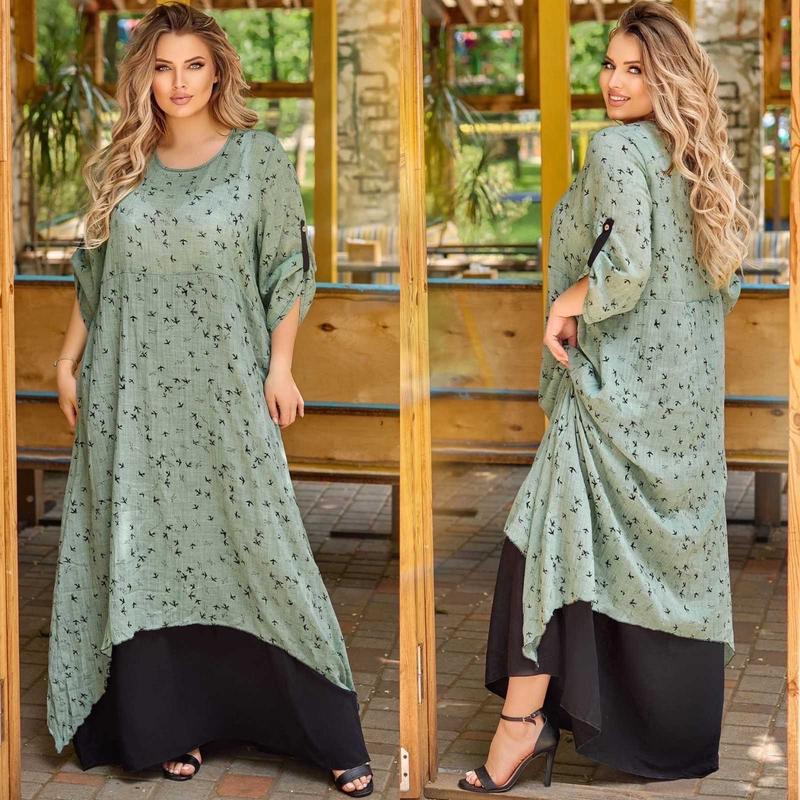 Сукня батальне повітряне вільного крою,рукав трансформер ✨Модель №д1373 ✨Ціна:700 грн ✨Розмір:50-52(3),54-56(4) ✨Тканина:батист ✨Колір:пудровий+чорний,сірий+чорний,ментоловий+чорний Виміри: Розмір 50-52 ог-120,від-134,довжина-160 Розмір 54-56 ог-128,від-144,довжина-160 Христина