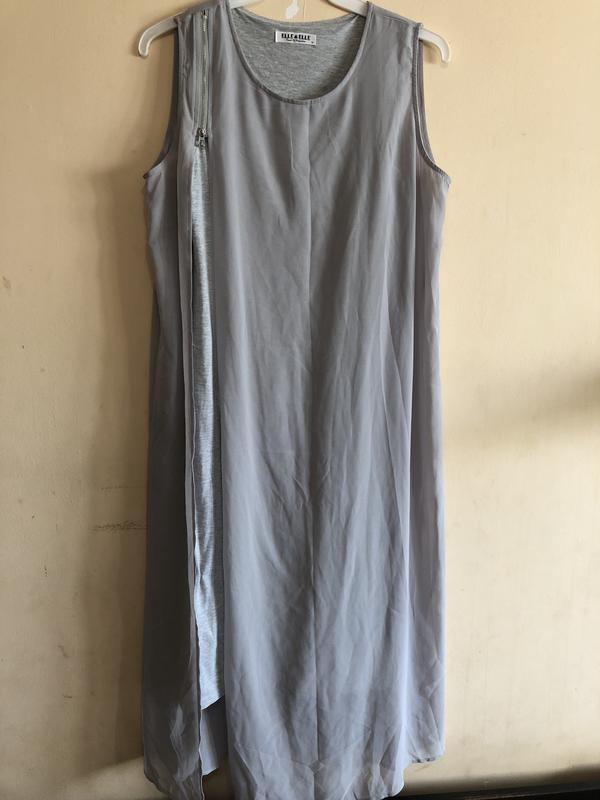 Состоит из двух Соединённых платьев Низ трикотаж по фигуре,верх свободный Длина 125 Грудь 55(верха)