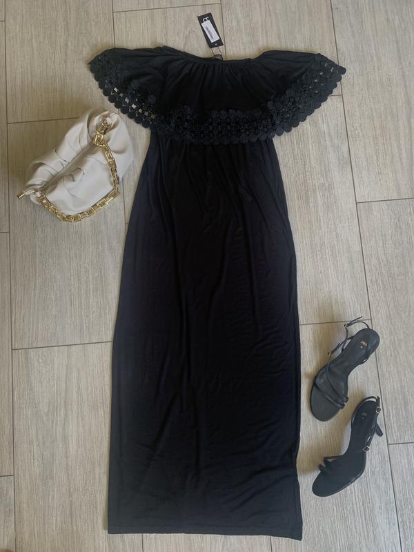 Платье со спущенными плечиками от boohoo. 96 % вискоза. Новое с биркой Размер S Длинна 123 см Свободное