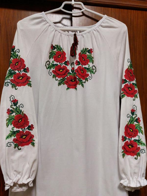 Плаття ручної роботи, вишивка ручна. домотканне полотно, стан нового, взагалі не вдягалось. по боках розрізи 45, пог 51, рукав 68, довжина 138.