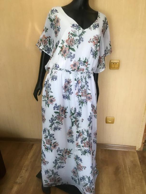Довге плаття на підкладці з пояском.Талія на легкій гумці. 100% поліестер. Вказаний розмір ХЛ, але орієнтуйтеся по замірах ПОГ-56см ПІТ-44-50см ПОЬ-74см, Довжина-140см