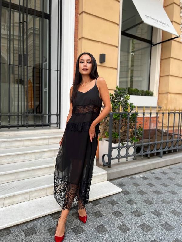___________ Сукня Мод 858 Ціна: 675 грн Розміри: 42-44, 46-48 Тканина: софт+ шифон+ мереживо Кольори: чорний та білий Шлейки регулюються. Мереживо може змінюватися