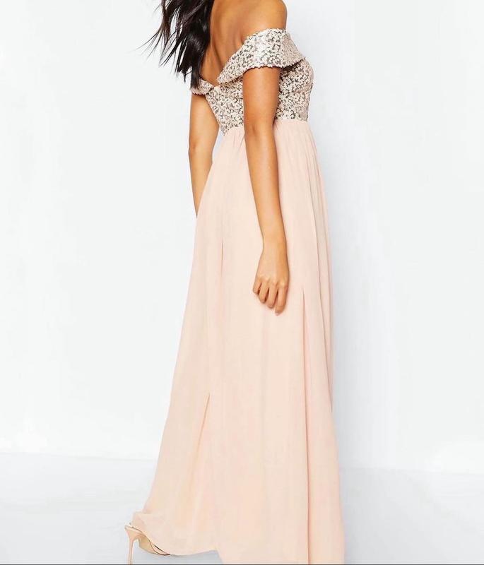 💖Обворожительное шифоновое макси платье Boohoo ,верх расшитый пайеткой 💖 👩S евро размер 36 🧵100% полиэстер Пог 43 см Пот резинка 33 см Бёдра свободные Длина 135 см
