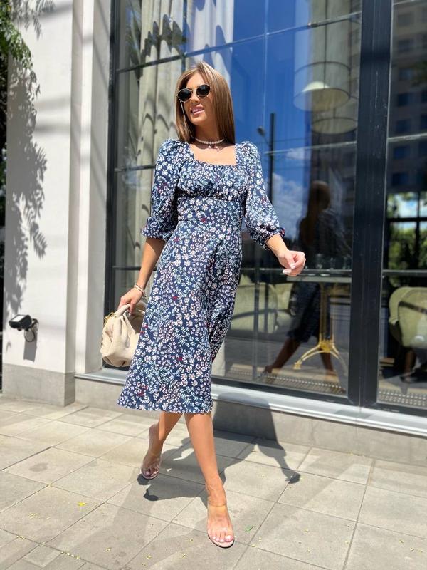 Платье Мод 680 Ткань - Штапель Цвет - синий , мята , белый Размер: S-M , L-XL На груди резинка На спинке потайная змейка Длина от плеча 112/113 см Спереди боковой разрез на юбке Цена - 450 грн