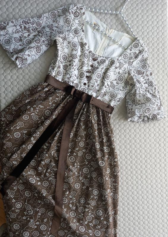 Вінтажне плаття 40-50 років, California , Англія, розмір 38, довжина спинки 38см, довжина спіднички- 104 см, ПОТ-34 см, ПОГ-48 см, ширина плечей 38 см, довжина рукава 35 см, рукав-ліхтарик, в ідеальному вінтажному стані.
