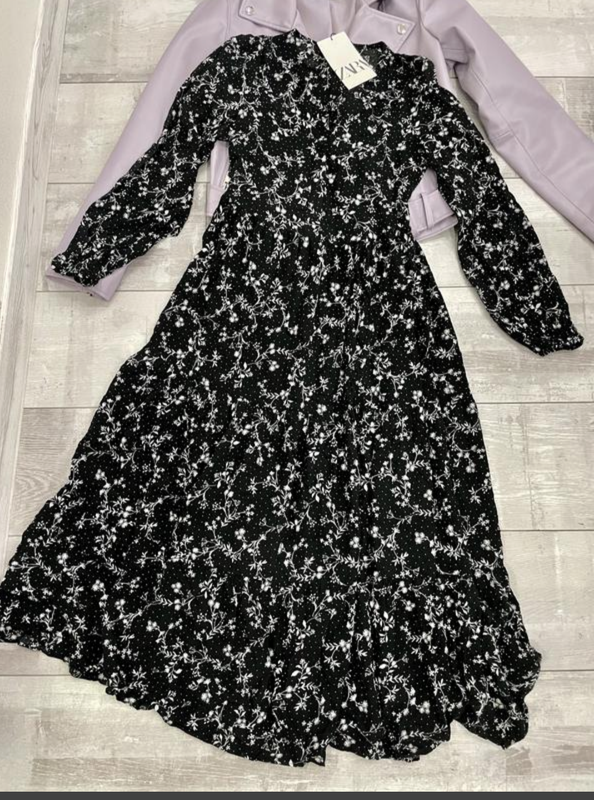 Платье от зара одевала пару раз розмер указан S ка но по мне больше на XS идет.Одето на 85 66 90 параметры рост 166.Замеры по груди полуобхват 41 см длина от плеча 117 см талия 38 см.