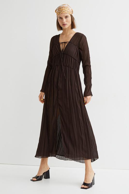 Сукня довжиною до литок із гофрованого шифону з глибоким v-подібним вирізом і нерівними ву...