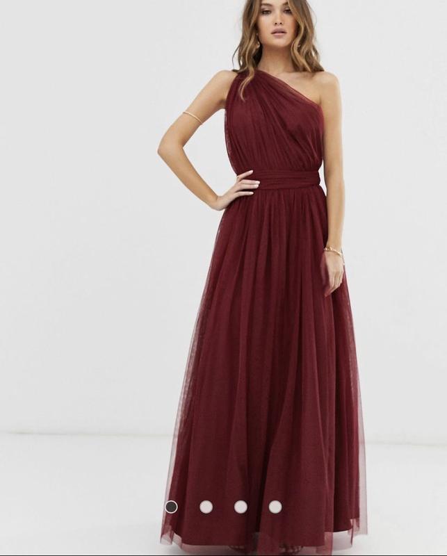 Асиметрична сукня максі із тюля з многослойною спідницею