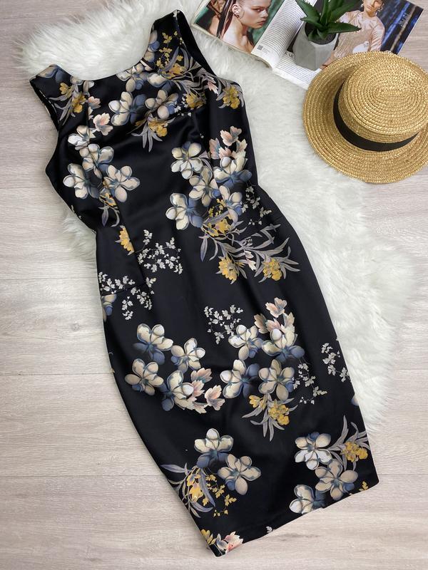 Модель : чёрное миди платье в цветочный принт с квадратным вырезом на спине и молнией Бренд : Marks &Spenser Размер : XL{42} Состояние : идеальное Состав :94% полиэстер,6% эластин , подкладка 100% полиэстер Замеры : длина от плеча 102 см, пог 47 см, ширина плеч 34 см, пот 40,5 см, поб 49 см, ширина снизу 46 см