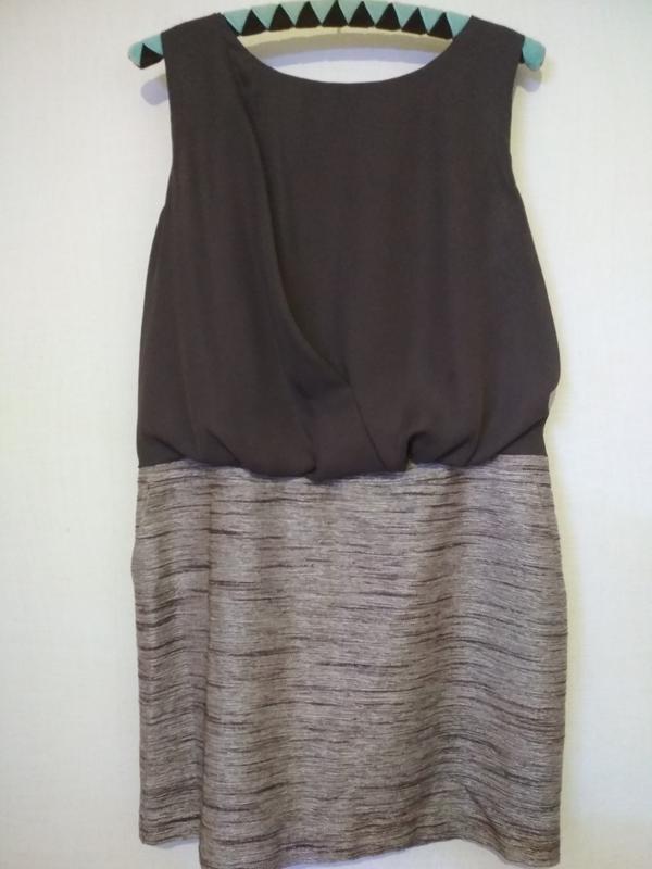 Платье миди комбинация на подкладке коричневое с карманами next (размер 14) сзади замок