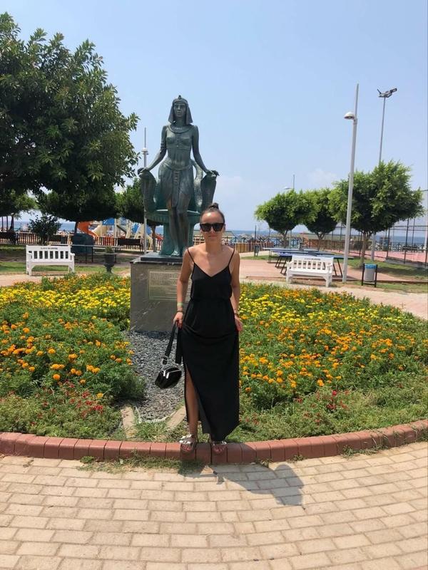 Довгий сарафан на вузьких бретелях із крепової тканини, частково виготовленої з поліестеру вторинної переробки. Підібрана відрізна талія на резинці. Пряма спідниця з високими розрізами з боків. Без підкладки. Не просвічуєть, можна носити без бюсгалтера. Підійде на S і на М.