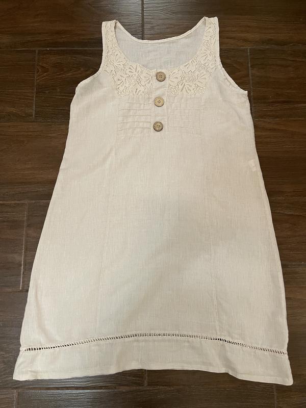 Платье бежевого цвета, лён 100%. Италия. Состояние идеальное. Дефектов нет. ПОГ 50 см, ПОБ 57 см, длина 91 см.