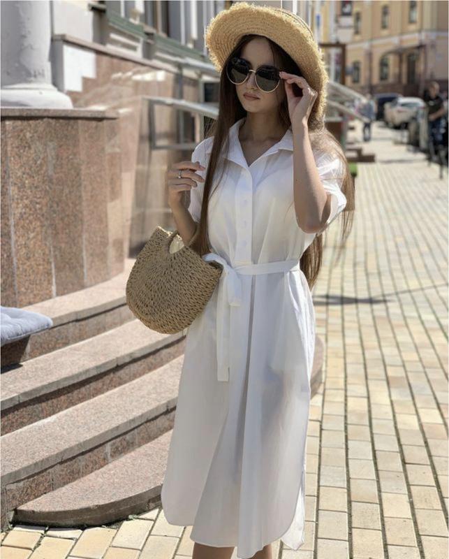 Хлопковое лёгкое платье. Прямой крой. Есть карманы и поясок. Платье свободное one size Состояние 5+