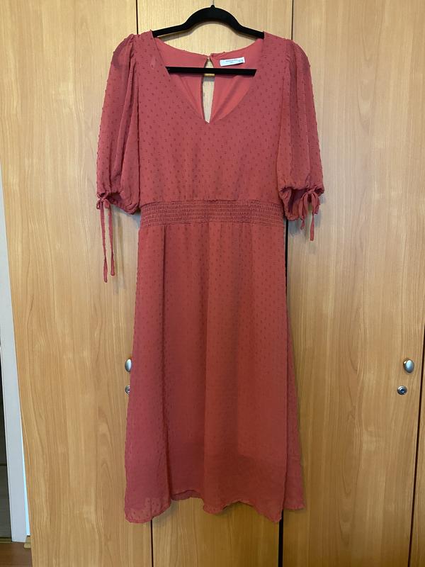 З підкладом, прасувати не потрібно. Заміри: пог 44, талія на резинці, поб 50, рукав-36, довжина 110. Стан ідеальний, без нюансів