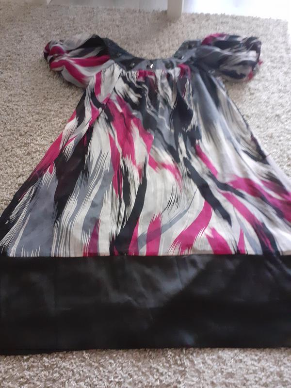 легкое платье с коротким рукавом-обьемный фонарик,горловина и низ украшены полосой атласа,,длина 79см,есть подклад,реглан,возврата нет,отправлю любой почтой,оплата на карту