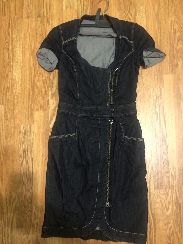 Плаття в гарному стані темно синього кольору з коротким рукавом на змійках зпереду.Довжина 95 см, плечі 34 см, в грудях 42 см в талії 33, в стегнах 40, довжина рукава 23 див. Рукав до низу завужений.