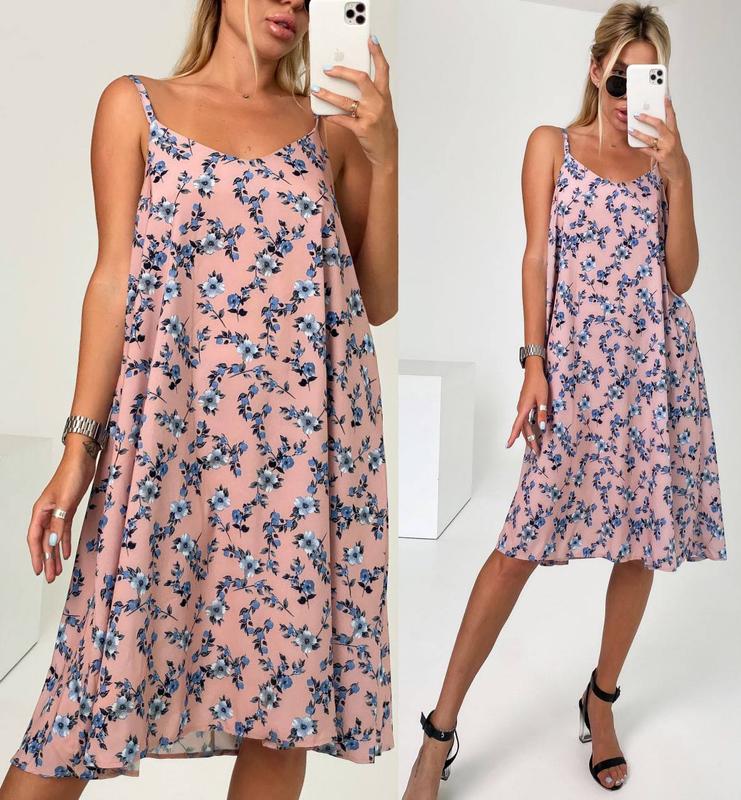 Платье Мод. 946 Ткань: Софт Отличное качество! Размеры: Универсал (Ог до 102см, Длина 100см) Расцветки: Синий принт, Черный принт, Пудра принт