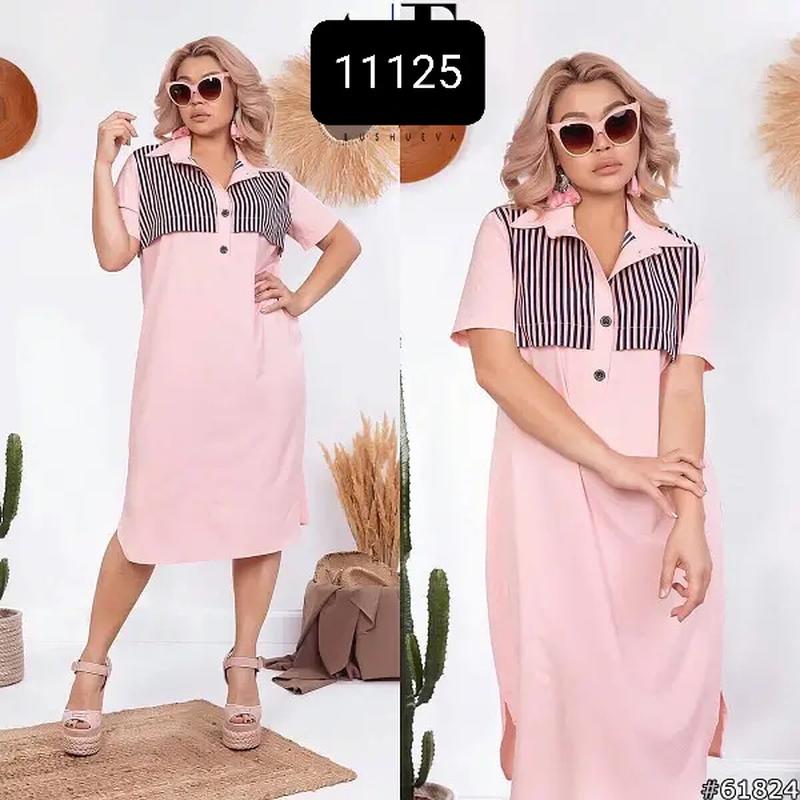 Модна і дуже зручна сукня дозволить створити елегантний образ Основна тканина - софт Модель виконана у прямому крої із закругленими розрізами з боків, що вигідно демонструє фігуру Сукня доповнена стриманими деталями, що надають презентабельності образу Відкладний комір, застібка поло та короткі рукави створюють гармонійне поєднання у силуеті Родзинкою моделі є верх у смугастий принт, що додає виразності образу 50р довжина 106 см., груди 98 - 102см талія 84 - 88см стегна 104 - 108см 58р довжина 112 см., груди 114 - 118см талія 102 - 106см стегна 120 - 124см