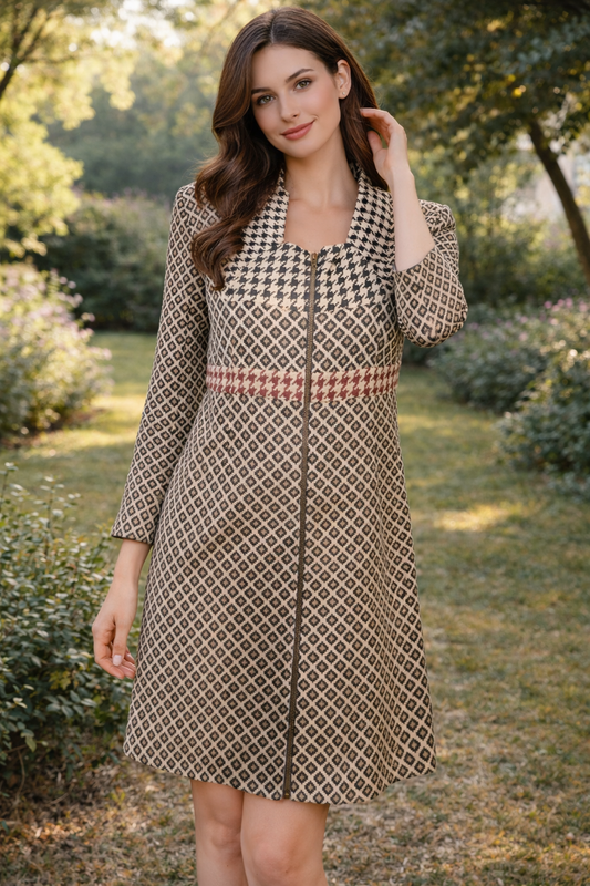 ✨ Стильне та елегантне плаття у витонченому класичному стилі Ідеально сідає по фігурі та підкреслює силует 🤍 Актуальний принт додає образу дорогого та статусного вигляду Спереду застібка на блискавку по всій довжині — зручно та красиво Рукав 7/8 — універсальний варіант на сезон Верх частково на підкладці — комфортно та не просвічується Тканина щільна, якісна, добре тримає форму ✔️ Нове, залишок з магазину ✔️ Без дефектів ✔️ Виглядає дуже дорого вживу 📏 Заміри: ОГ — 98 см ОТ — 90 см ОБ — 112 см Рукав — 49 см Довжина — 94 см