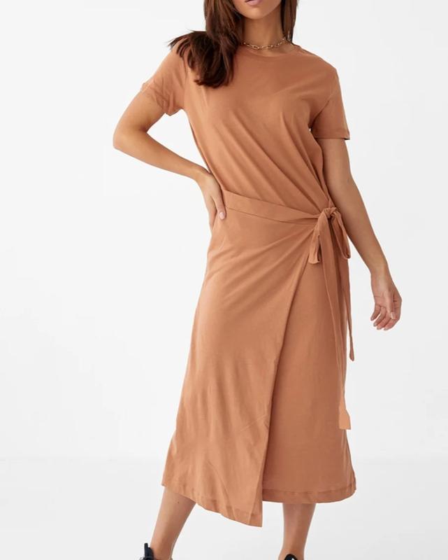 Стильное платье-футболка с имитацией запАха 100%хлопок Размер указан С, но подойдёт и на М Длина 120 Пог 47.5 Поб 49 🏷450грн
