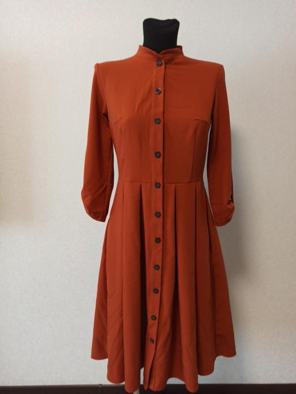 Тендітна сукня на гудзичках. Легка сукня з довгим рукавом та ґудзиками по всій довжині. Фасон що підкреслює талію, міді довжина. Тканина- віскоза