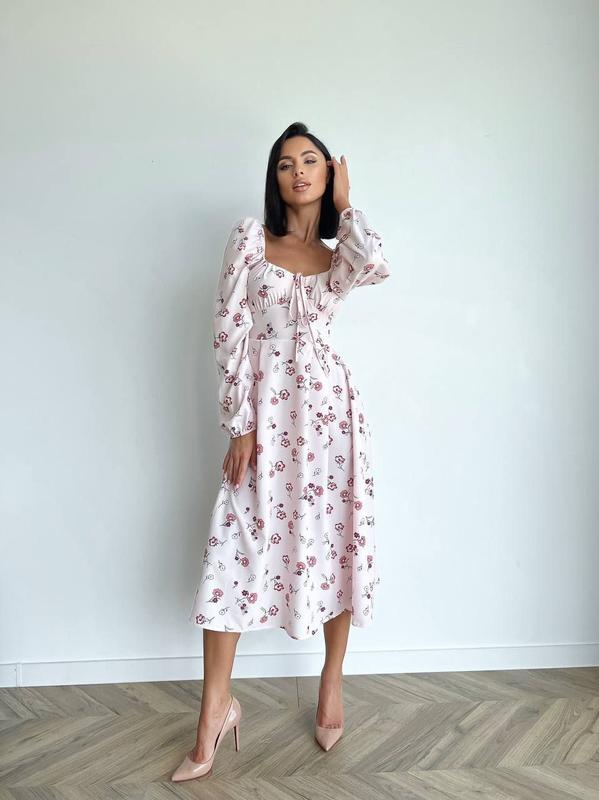 Модель 463 Жіноча сукня в квітковий принт Розмірний ряд S,M,L,XL Тканина турецький софт(приємна на дотик, не просвічувається) Кольори пудра, лаванда, блакитний, чорний Модель дуже романтична, довжина міді, на груді ґудзики, сідає дуже гарно на кожен тип фігури , за рахунок кльошу по стегнах приховує всі недоліки Застібається на блискавку у шві Супер якість