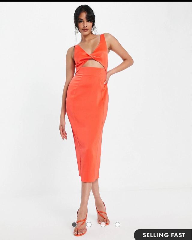 Помаранчева насичена сукня Asos, важкий атлас, виглядає дорого, якість дуже класна , на сайті 70$ ✅UK8, S Довж 112 ПОГ 40 талія 33 стегна 44
