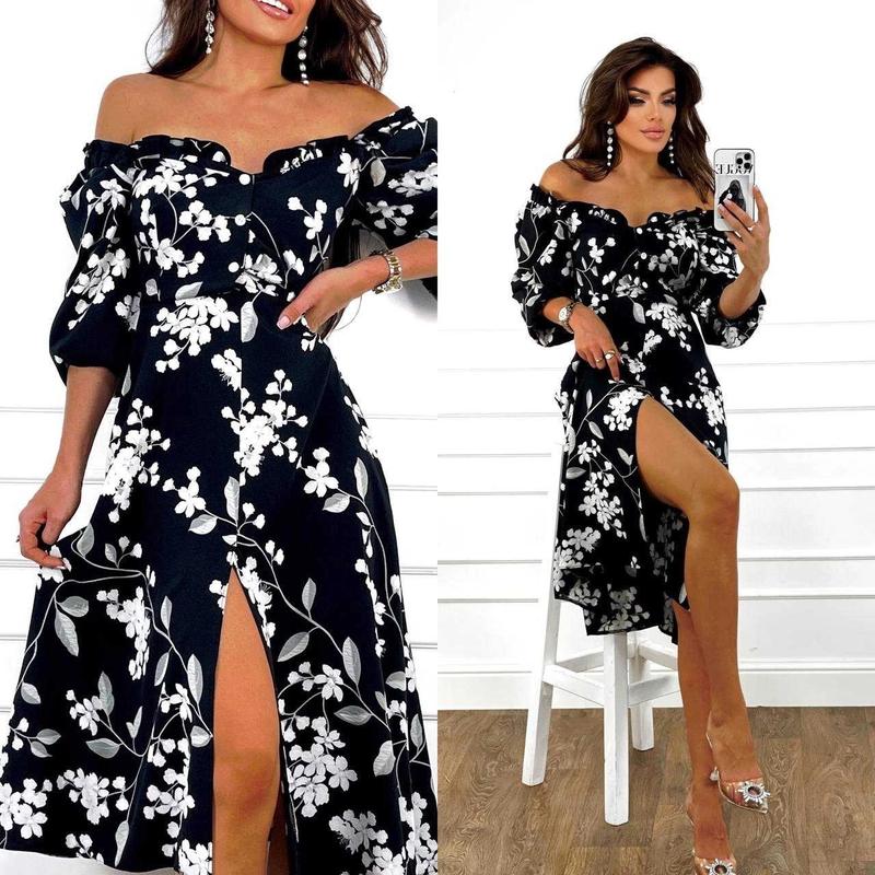 309 Артикул FF7F246F 💣💥💣НОВИНКА💣💥💣В НАЯВНОСТІ 💣💥💣 🔥🔥🔥Плаття🔥🔥🔥 Арт. SV 371 Тканина: євро-софт Колір: чорно-білий Розміри: S, M, L, XL Опис: Трендові плаття з розрізом . Модель міді довжини з об'ємними рукавами довжиною 3/4 і з рюшами на грудях