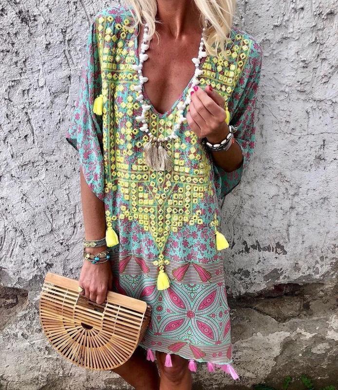 Яскрава, брендова, легка вільна сукня Miss Look з китицями, бічними кишенями та рукавами по типу "летюча миша". Розмір вказаний М, підійде на 2XL-XL-L oversized. Довжина 105 см, НОБ - 62, 5 см+,- Стан нової речі, паперова бірка відсутня. Відправлення після оплати на карту. Обміну та повернення немає.