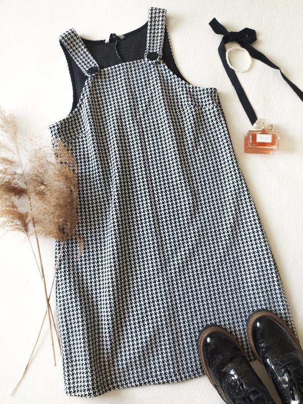 Трикотажный сарафан на шлейках. Принт гусиная лапка. Фасон трапеция. Не приталенный. Приятная ткань. Состояние идеальное. Размер XS/S.