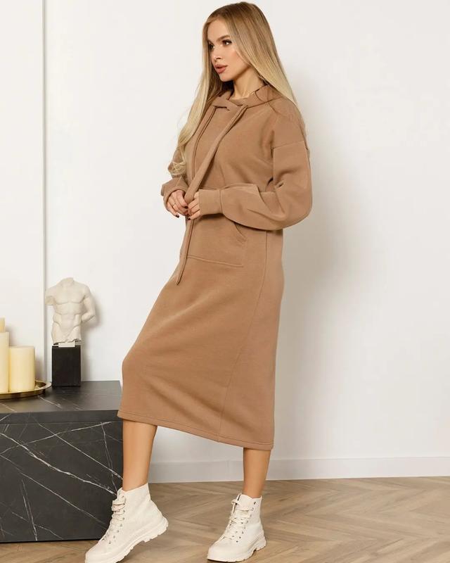 Тепла сукня-толстовка виконана з трикотажу на флісі в спортивному стилі. Арт: 12974 Розмір: S, M, L, XL, XXL, 3XL Матеріал: Трикотаж на фліcі Склад: 50%, бавовна, 50%, поліестр Ціна: 872 грн.