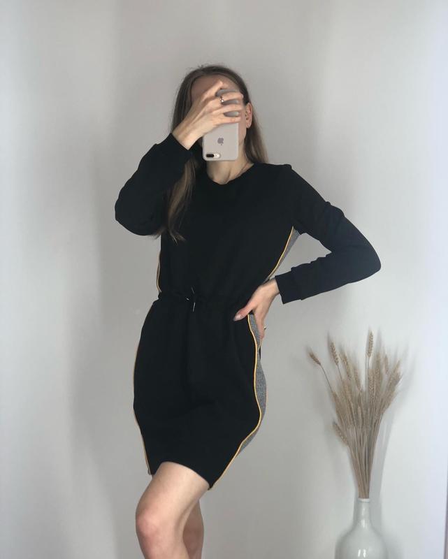 Чорна сукня з лампасами Талія регулюється шнурочком В ідеальному стані Підійде на розмір М За деталями в direct