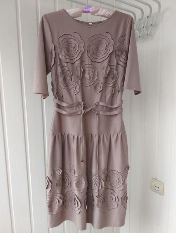 Очень красивое платье миди💥 Необычные розы из ткани,смотрится дорого и красиво. Интересный поясок будет подчёркивать вашу фигуру.
