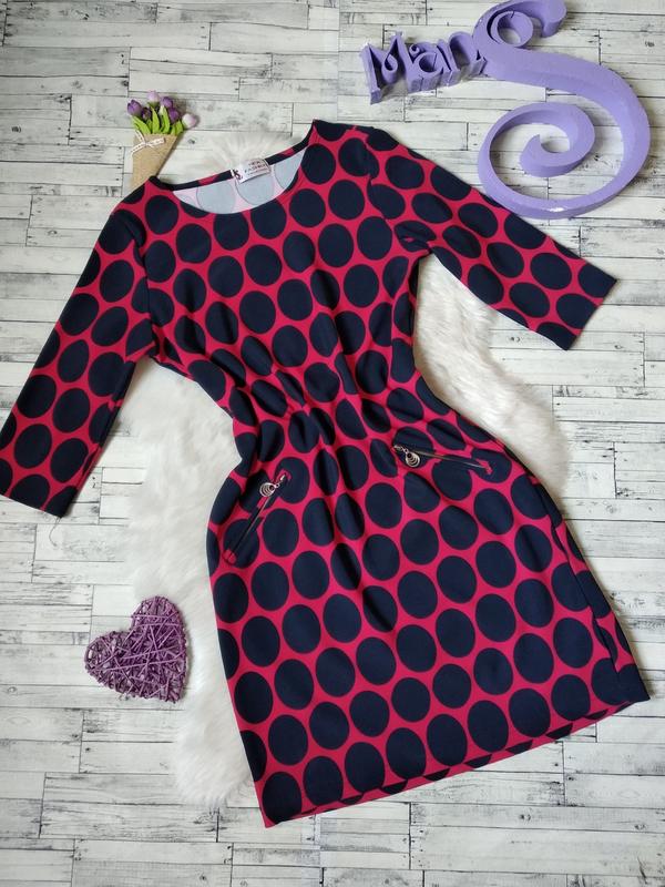 Платье SL женское красное в крупный горох в идеальном состоянии Размер 50 (XL) Замеры: длина 95 см рукав 43 см плечи 43 см ПОГ 51 см ПОТ 45 см ПОБ 53 см цвет: красный, синий горох состав не указан