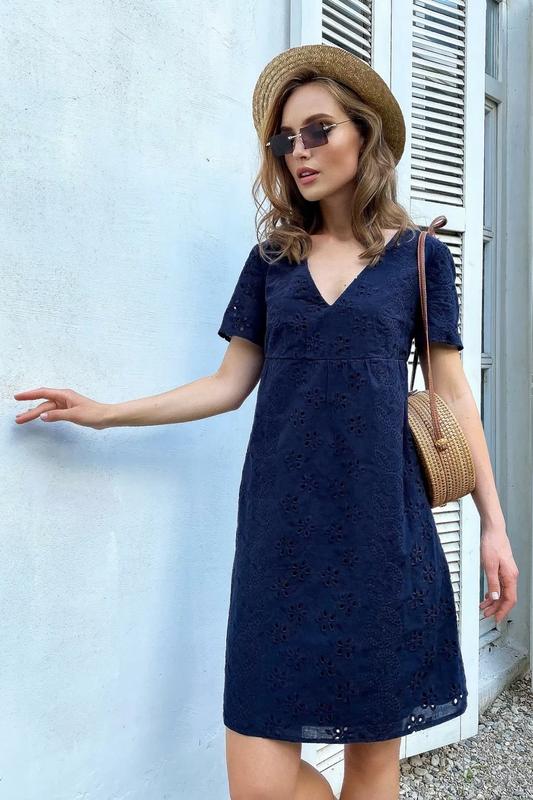 Параметры: Длина изделия от верхней точки плеча: S-M=91,5 см, L-XL=93 см Длина рукава: S-M=19,5 см, L-XL=20,5 см Тех. описание: Артикул: 1771.4701 Коллекция: Welcome to summer Категория: гламурные / молодежные / городские/уличные Сезон: лето Фасон: прямой / свободный / с завышенной талией Материал: вышитый батист, батистовая подкладка Цвет: тёмно-синий Декоративные элементы: вышивка Горловина: V-образный вырез Вид рукава: короткий, втачной Конструктивные элементы: нагрудные вытачки, подрез под грудью, подкладка Комплектация: платье Уход за вещами: ручная стирка до 30° Обратите внимание!: Цвет изделия может отличаться, учитывайте цветопередачу камеры и монитора. Принт: с вышивкой