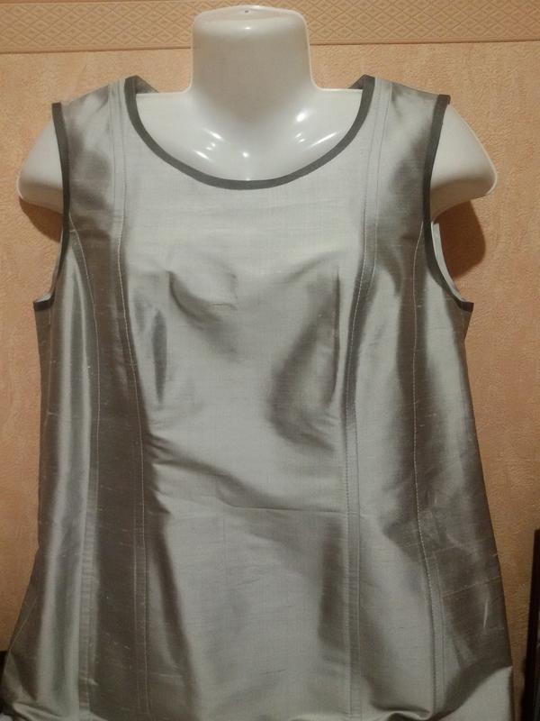 Состояние без замечаний. Цвет серый, стальной. Материал как будто в поперечных мелких затяжках. Отторочено серой лентой. Спереди внизу двусторонняя шлица. Пошито в ателье очень аккуратно, швы проффесионально оверлочены. Размера нет. Ориентируйтесь по замерам : Длина 104 см ПОГ 52-53 см ПОТ 48 см ПОБ 53 см Платье полностью на подкладке. Материал :лен и полиэстер.