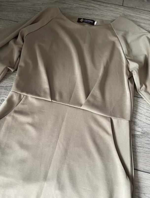 Елегантне плаття в розмірі Л (маломірка, ідеально для розміру М) Є кілька дефектів (на фото видно) кілька дрібних затяжок. При носінні вони не помітні. Довжина сукні 97 см Груди 40,5 см Талія 34 см Стегна 40,5 см Довжина рукава 47 см Є блискавка на сукні