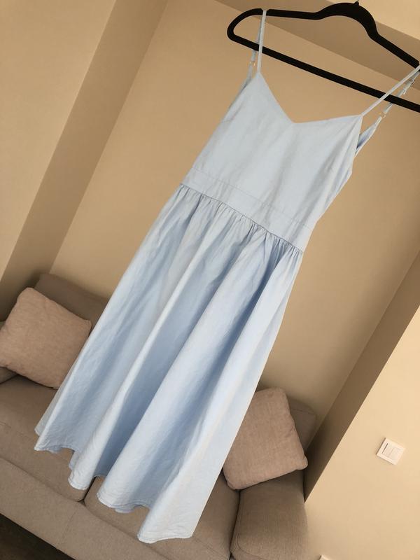 Дуже гарна сукня, красивого небесного кольору! З відкритою спинкою!💙😍👌🏻 Розмір :S Довжина-91 см Стан: дуже гарний, незначний нюанс від тіла, при носці не помітний. Тканина проста, не парить! Одіта один раз! Додаткові фото надам із задоволенням!
