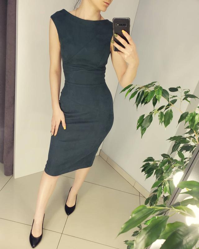 Замшева сукня зі змійкою на спині. Колір : бутилка. Розмір: L