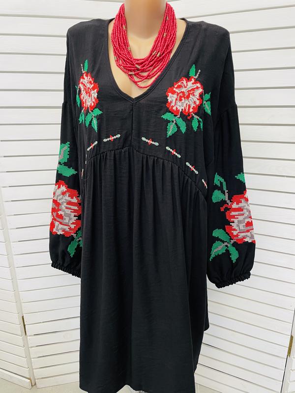 Сукня вільного крою, 50% віскоза 50% поліестр Довжина 95 ПОГ 63 ПОБ 84 Рукав 49, плече спущене