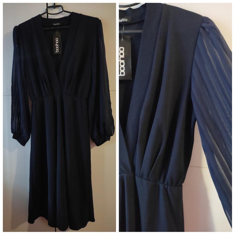 Нереальное новое платье от boohoo, очень элегантное и стильное, красивый шифоновый рукав. Размер м-л. Длина 110 см, грудь до 100 см, талия и бедра свободные. Цена всего 299 грн.
