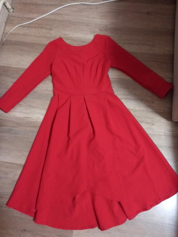 Продам дуже красиве плаття, стан новий (вдягнуто один раз), колір насичений червоний, тканина тягнеться трішки. Розмір М. Довжина попереду 94см,сзаду 104см, пог 45см, рукав три четверті. Дуже гарно садиться по фігурі,стало замалим(