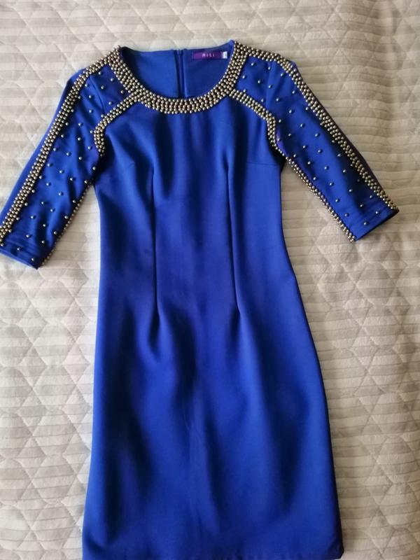 Сукня з ефектом утяжки, дуже гарна, всі намистини пришиті, ззаду потаємний замок, на бірці зазначений розмір М, але більше підходить на С, хоча тканина тягнеться. Додаткові заміри та фото надам за бажанням.