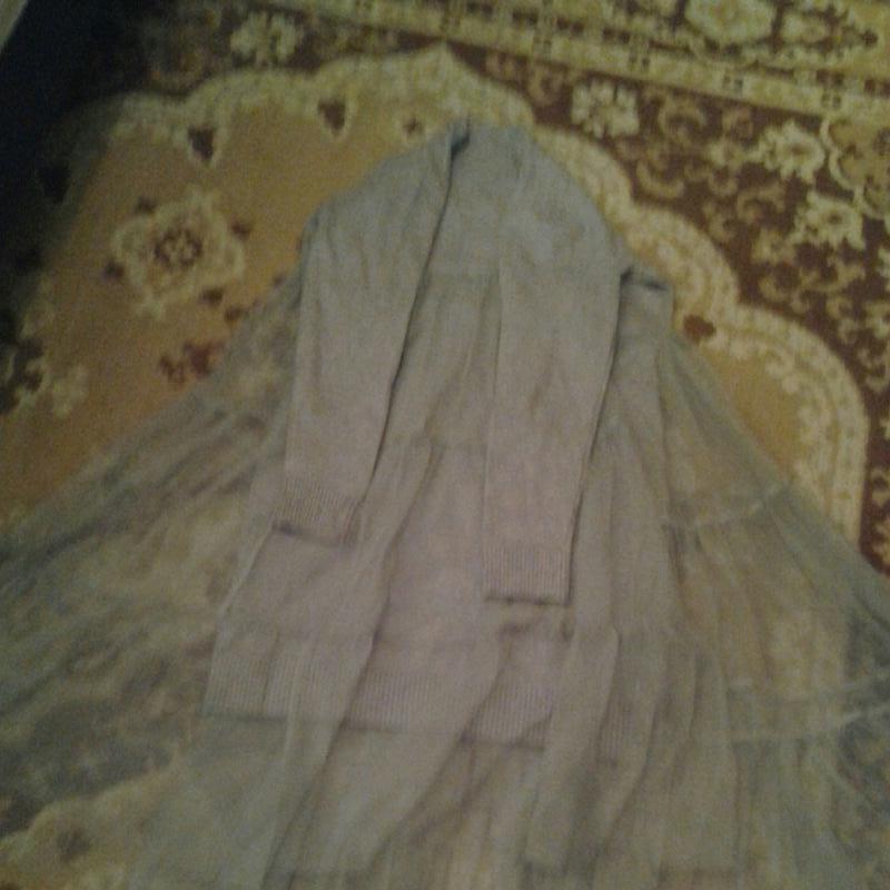 Платье с фатином , очень красивое , производство Китай. Есть нюанс , на фото видно. За замерами обращайтесь.плечи 35 , под мышками . 43 , рукав 48 , длина с фатином 98 , без фатина 76 . платье нижнее идёт стрейчевое , а сверху нашит Фатин.😃 без торга !!!😃😃😃