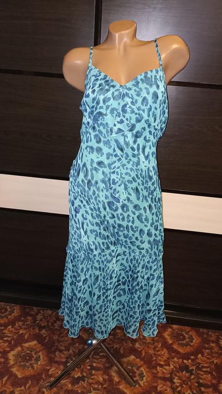 Хорошенькая и нежная вещичка. Есть подкладка. Скроено по косой, поэтому немного как бы тянется, но если больше в ширину, тем оно будет короче. Есть нюанс - на последнем фото, видно что сломана железка. Не критично, можно просто закрепить ниточкой под себя. Нюанс учтен в цене. ОГ 100 см ОТ 84 см ОБ 100 см Длина 110 см
