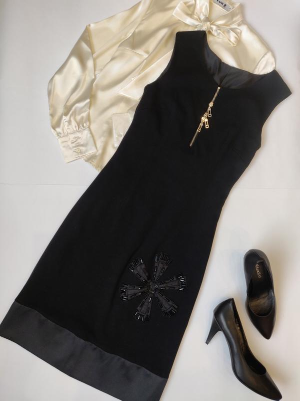 Ціна мінімальна, річ універсальна. Шикарне плаття футляр на всі випадки життя: від різних заходів до офісу - все залежить від того, з чим поєднувати. Таке плаття міді довжини можна носити цілий рік 👍як плаття і як сарафан, надівши під низ блузку чи сорочку. Виконано з італійського костюмного трикотажу, на підкладці. Лаконічне з цікавими акцентами: декоративна блискавка на грудях, сатинові вставки. Детальні виміри напишу по запиту.