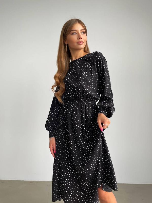 Сукня міді яка закохує з першого погляду тканина софт розміри 42-44, 46-48 🗯чорний в білий горошок