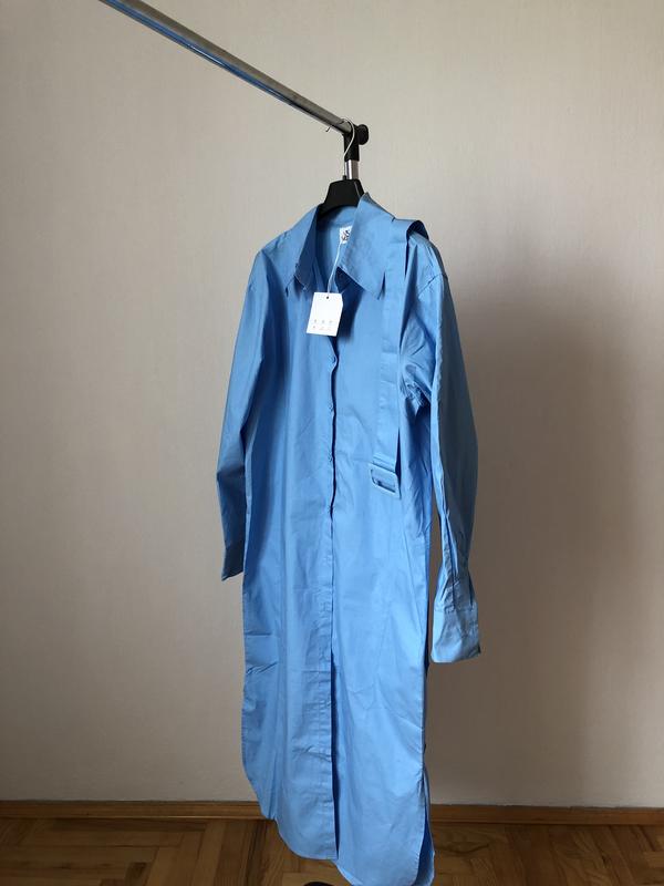 Нове ! (До речі можна носити розщепленою як довгу сорочку) Плаття нижче Колін, мій ріст 175 см Розмір S (якщо ти висока) або невелика М Довжина плаття 114 см Довжина рукава 59 см приблизно ПОг - 54 см ПОБ 53 см