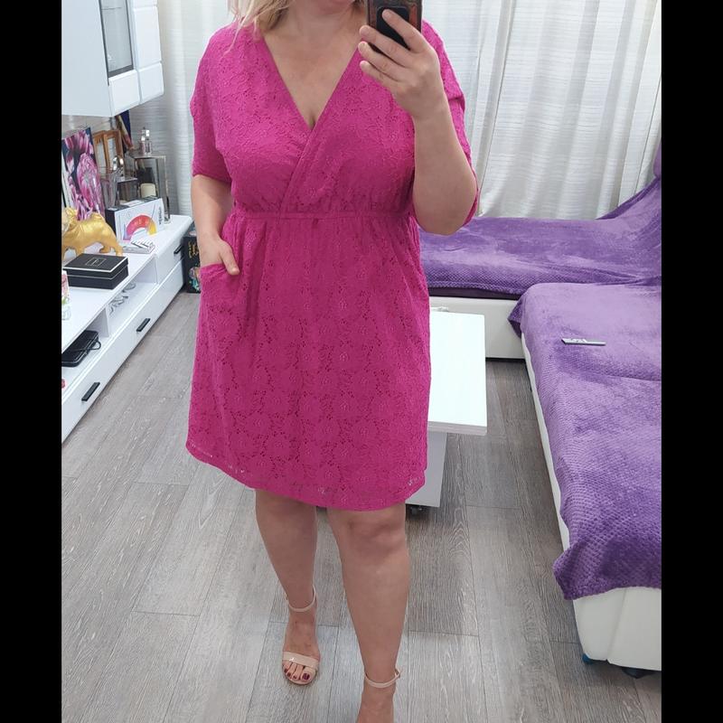 сукня на пишні форми, на резинці з підкладкою одягнуто на розмір 18, зріст 175 ОГ125 ОБ 125 заміри пів обхват талії 46, тягнеться до 60, пів обхват стегон 67 довжина 97